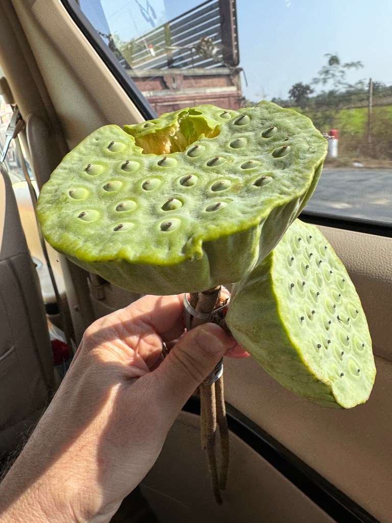 The drive is not particularly interesting though we did pass a few beautiful temples and Pho Bang stopped twice to buy some snack food from the peasants on the side of the road. The first stop was for lotus pods. You dig into them and dig out the seeds. Kind of tasted and had the texture of uncooked edamame. It was interesting and ok, but didn’t blow me away.