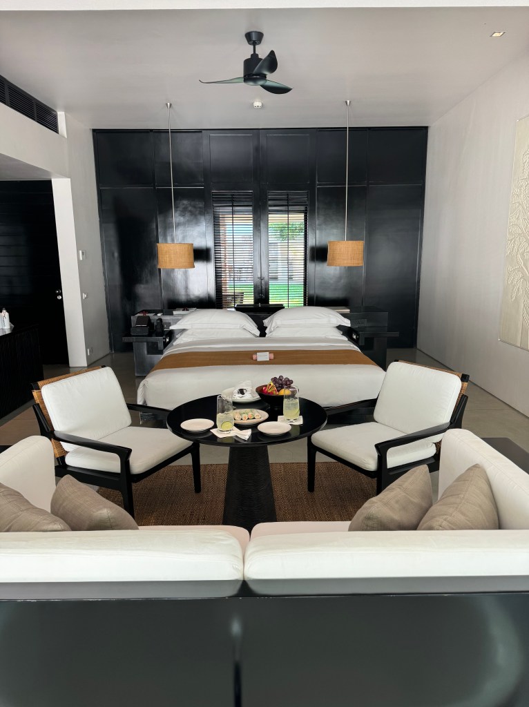 I love how many “complimentary” services come with our room, like we’re not paying for it in the exorbitant amount we’re paying. You get “free” laundry, “free” breakfast, “free” lunch or dinner,”free”private tours of Angkor Wat, “free”tuk-tuk driver and my personal favorite two “free” Negronis in beautiful bottles that you hated to even open, but, of course, we did. I will say that the tuk-tuk drivers came in handy. They’d take us wherever we wanted to go and then just wait for us no matter how long it took. The room was large and came with a full outdoor deck with 10 foot walls so no one could possibly spy on you.