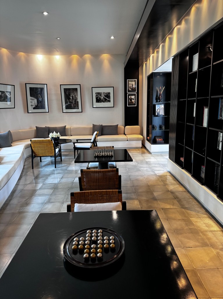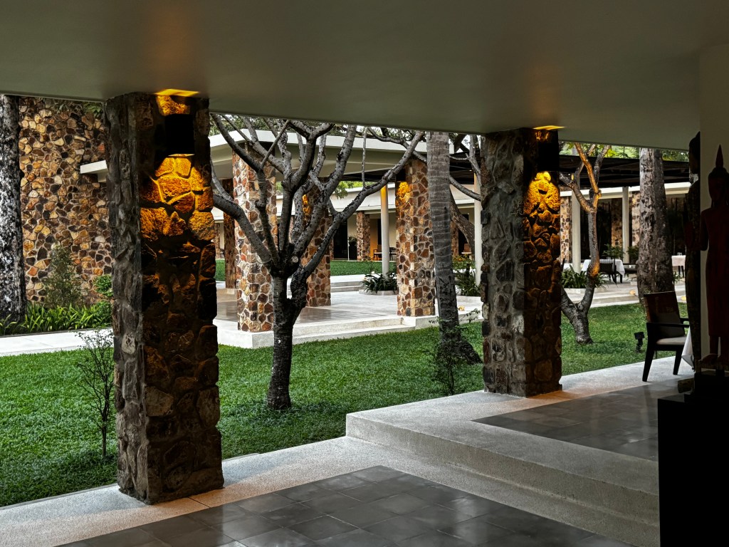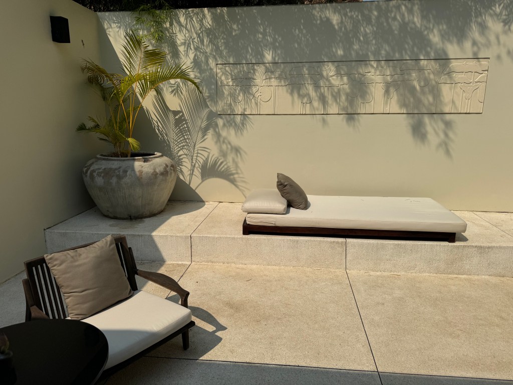 We arrived in Siem Reap and headed for our hotel. Siem Reap, unlike Phnom Penh, is orderly, non-chaotic by Phnom Penh standards, must have some degree of zoning (in Phnom Penh you can find mansions next to used tire shops), and a general degree of prosperity that we have not seen. We’re staying at the Amansara part of the Aman chain of hotels mostly in Asia but opening globally. Aman hotels cater those who want to vacation but who also want privacy. Hence, there’s no name on the dark green solid metal gate where you enter. You have to know of the hotel’s existence so adoring fans of guests can’t find you and clamor for autographs. I would be happy to give my autograph to adoring fans, but all anyone wants is my signture at the bottom of a credit card receipt (there have been many autographs so far on this trip). We are met by the staff with the hand-clasped bows and once again, there is no reception area, just an outdoor very fancy picnic table. Sit and enjoy a cold lemongrass tea while we wait for the general manager to come and are handed a cold, wet towel to clean our hands and wipe off the 95 degree sweat from our faces. (This towel thing appears to be a thing not just at Amansara but generally in SE Asia. Whoever is in the white washcloth business is making a fortune.) The general manager?? Sure enough the manager, MJ from South Africa, shows up to tour us around the hotel. MJ has landed the dream job of hotel gigs and he knows it. His job is running a paradise and apparently money is no object to achieve paradise standards. Blond hair, on the shorter side and a bit stocky, he’s dressed in street clothes, no tie, no jacket, nothing that says “I’m the GM of paradise.” Just a regular guy who could be someone your kid met in college who works in tech. In his basement. MJ though is a charmer and it’s clear why he landed this job. He runs a well-oiled machine where the customer is king or at least a friend of the king. Service is everything and the place is spotless. There must be at least a half dozen human sweepers around the joint doing nothing but sweeping. One was even sweeping the grassy area. After we’re finished with the greetings and the tour of the property that included the restaurant (you can have any meal at anytime day or night), the library (beautiful with more photos of Jackie O with the King and looking like no one has ever stepped foot in there except the sweepers), the spa (oh, yeah!), the pool area and finally our room!